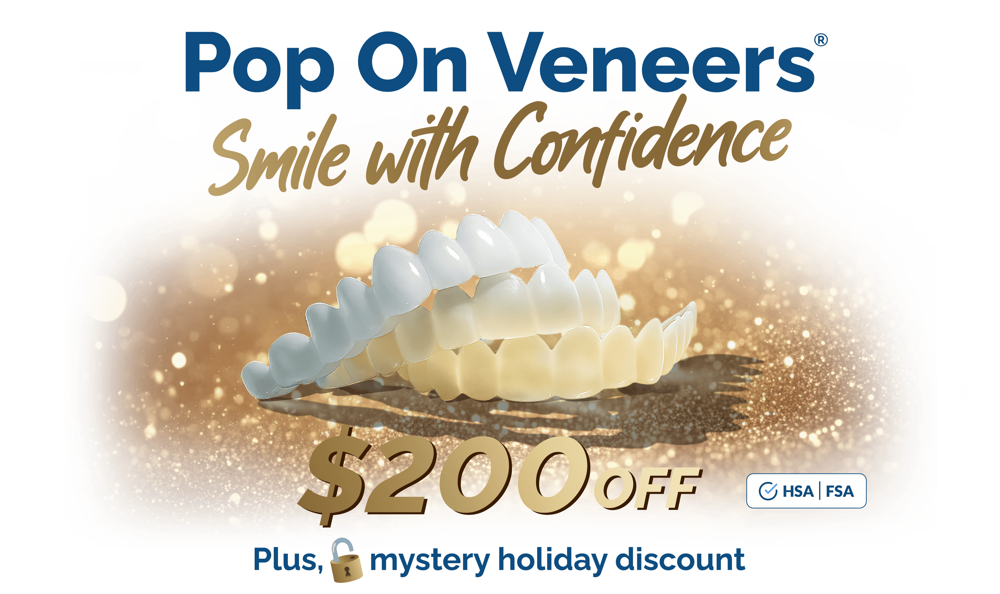 Your Pop On Smile offers a secure fit and lasting durability, designed to pop snugly over your existing teeth. Lightweight and comfortable, you can wear your new smile all day with confidence—and even hear it pop into place!