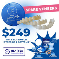 You can get spare veneers that will be a very close replica of the veneers that we already designed for you. If you would like to order Top AND Bottom, and you have not ordered both before, then please purchase Pop On Veneers Top OR Bottom for the other arch. For example, if you already ordered Pop On Veneers for the Top, and now you would like both, then you can order Spare Veneers for the Top and Regular Pop On Veneers for the bottom.